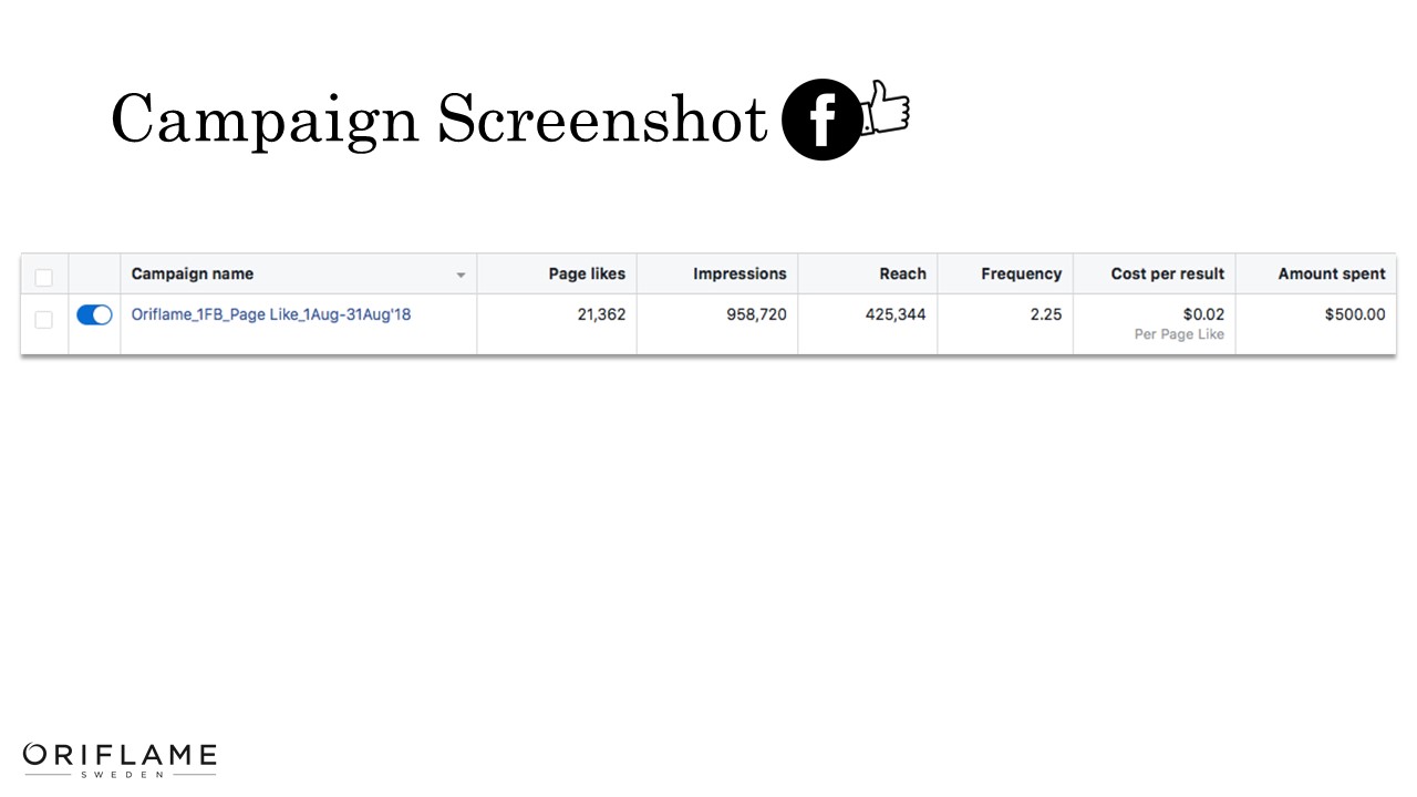 Oriflame India wanted to boost their social media presence on Facebook and Instagram through page like campaigns and post engagement activities.